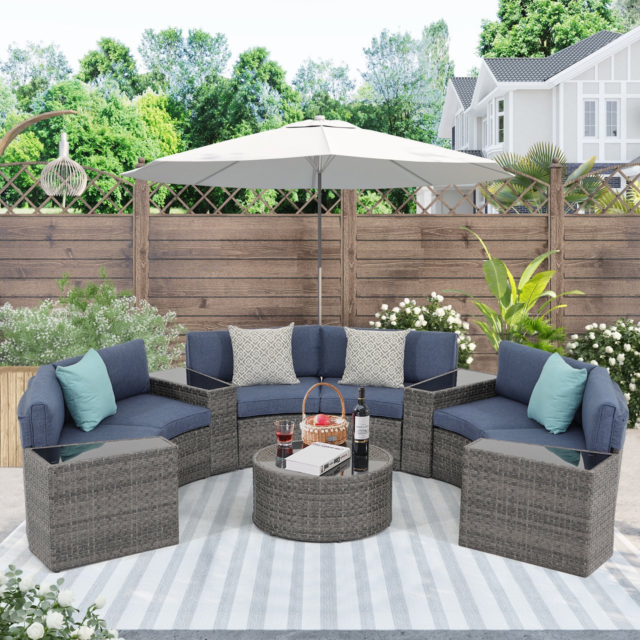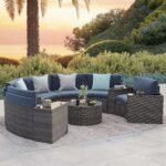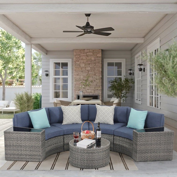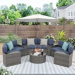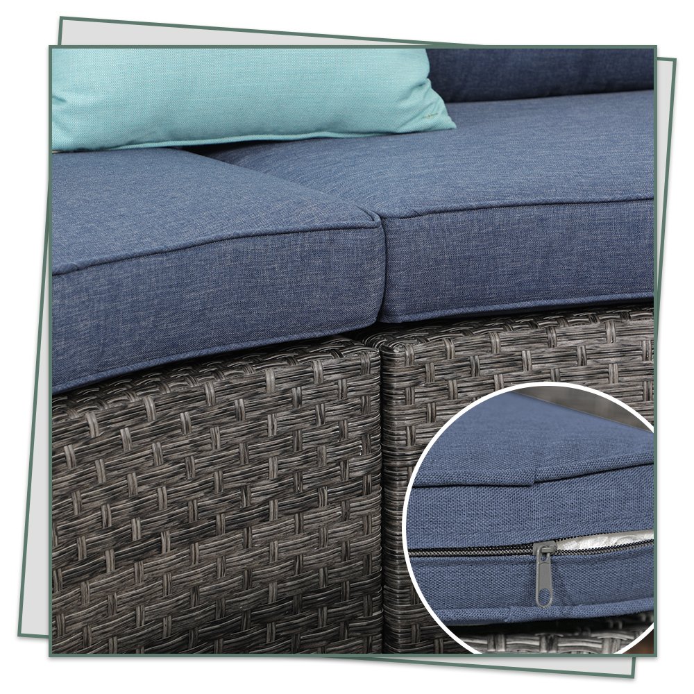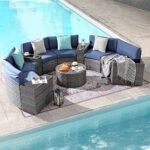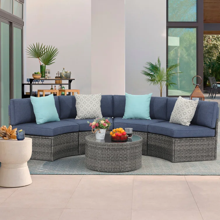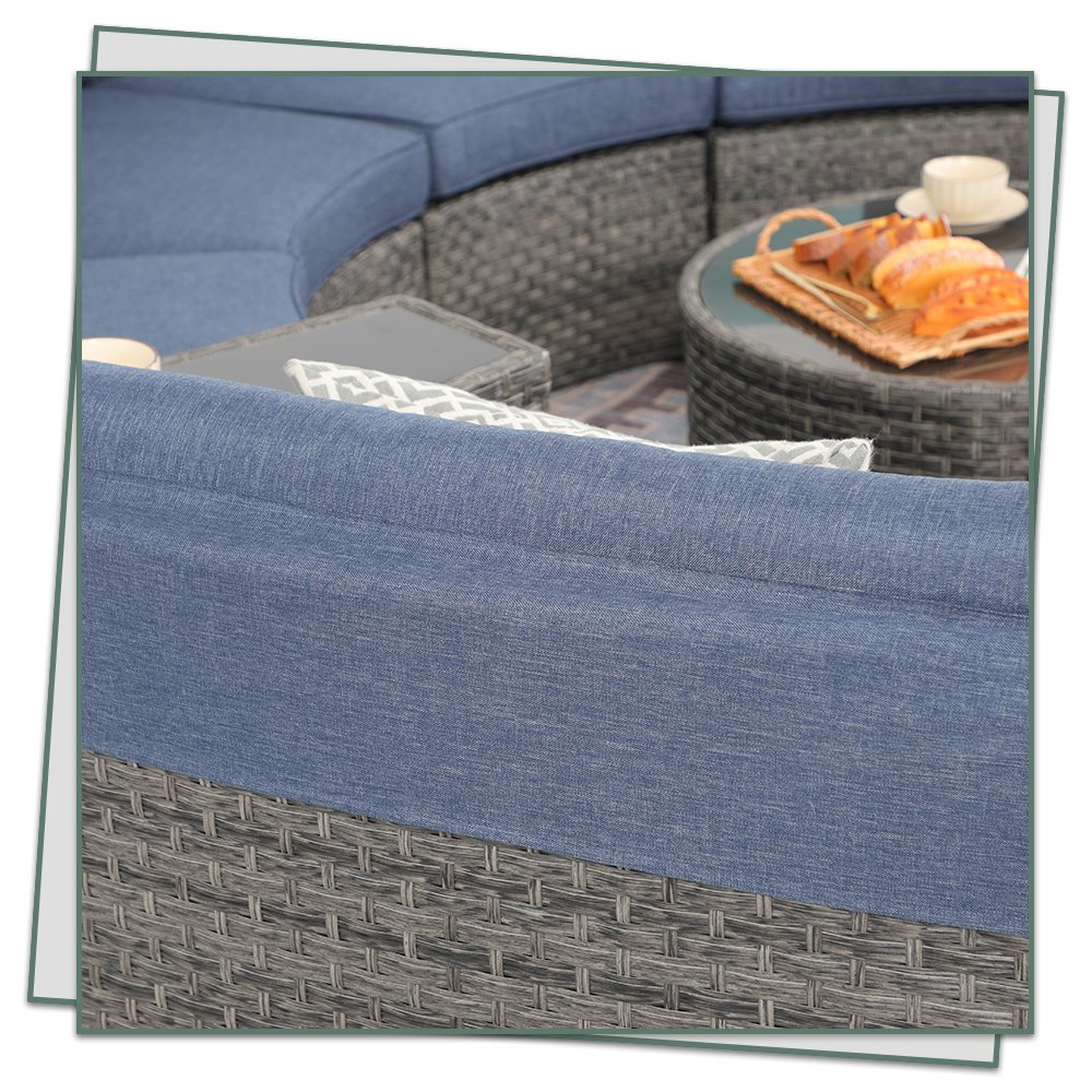 5-11 pcs Outdoor Curved Sofas, Wicker Curved Patio Furniture, Denim Blue