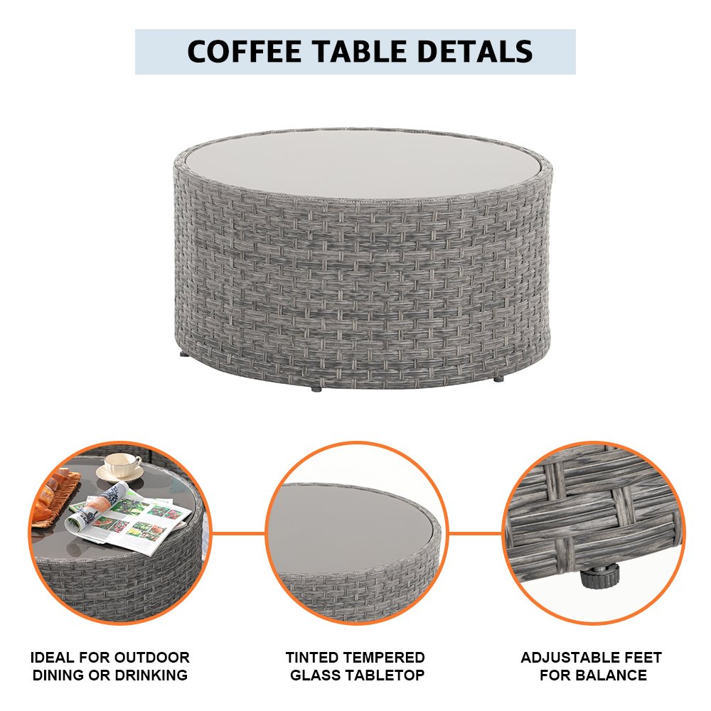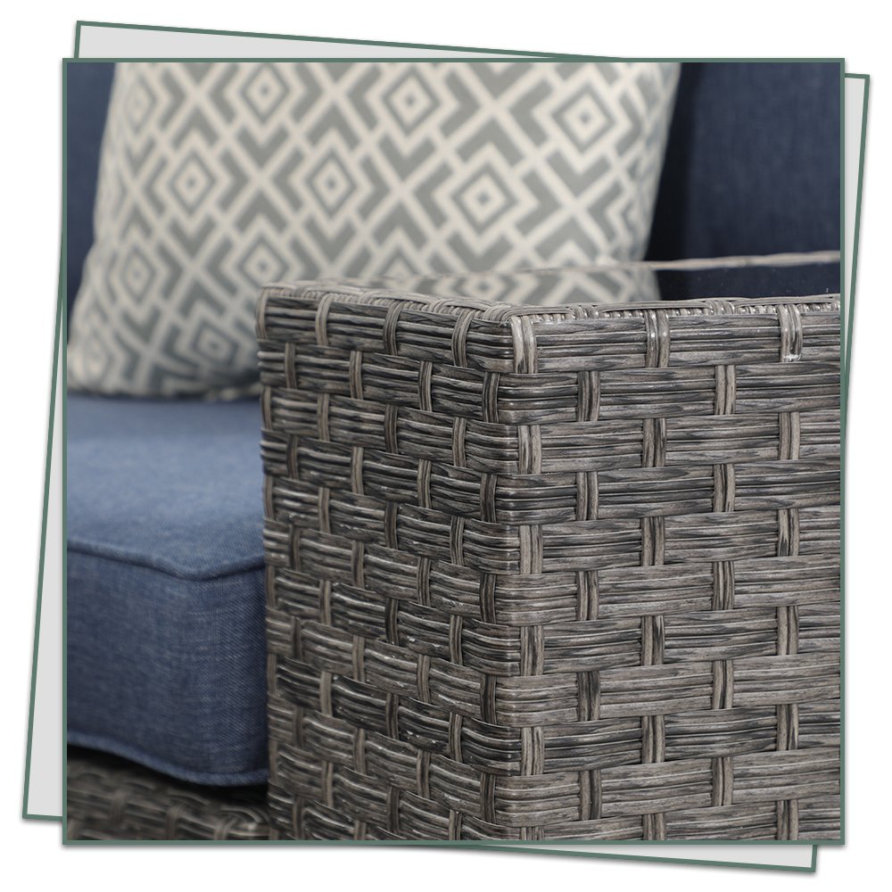 Complex Wicker PatternRich grey PE wicker rattan combines style and durability to make your outdoor space look new. |