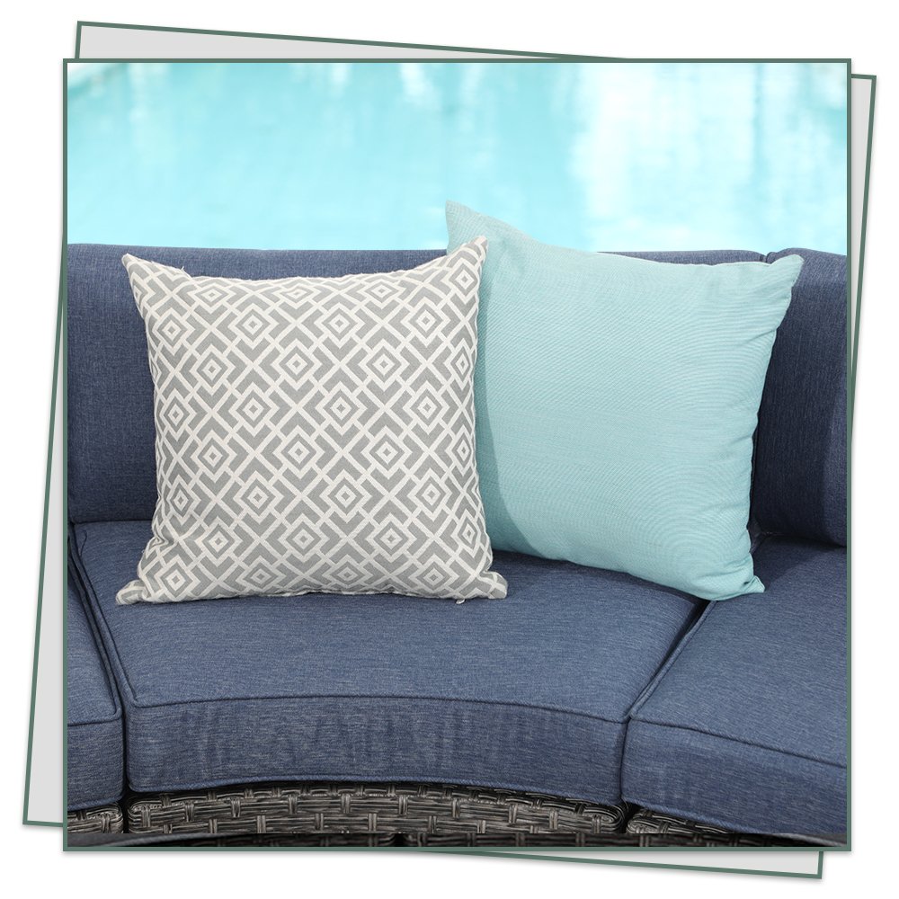 The Halo collection comes with Half Moon Design, premium olefin fabric, and handcrafted all-weather wicker. The elegant synthetic wicker is handwoven into complex patterns that give the patio furniture set its refined look. The striped pillows add a touch of elegance and style to your patio, garden, backyard, porch sunroom or pool.