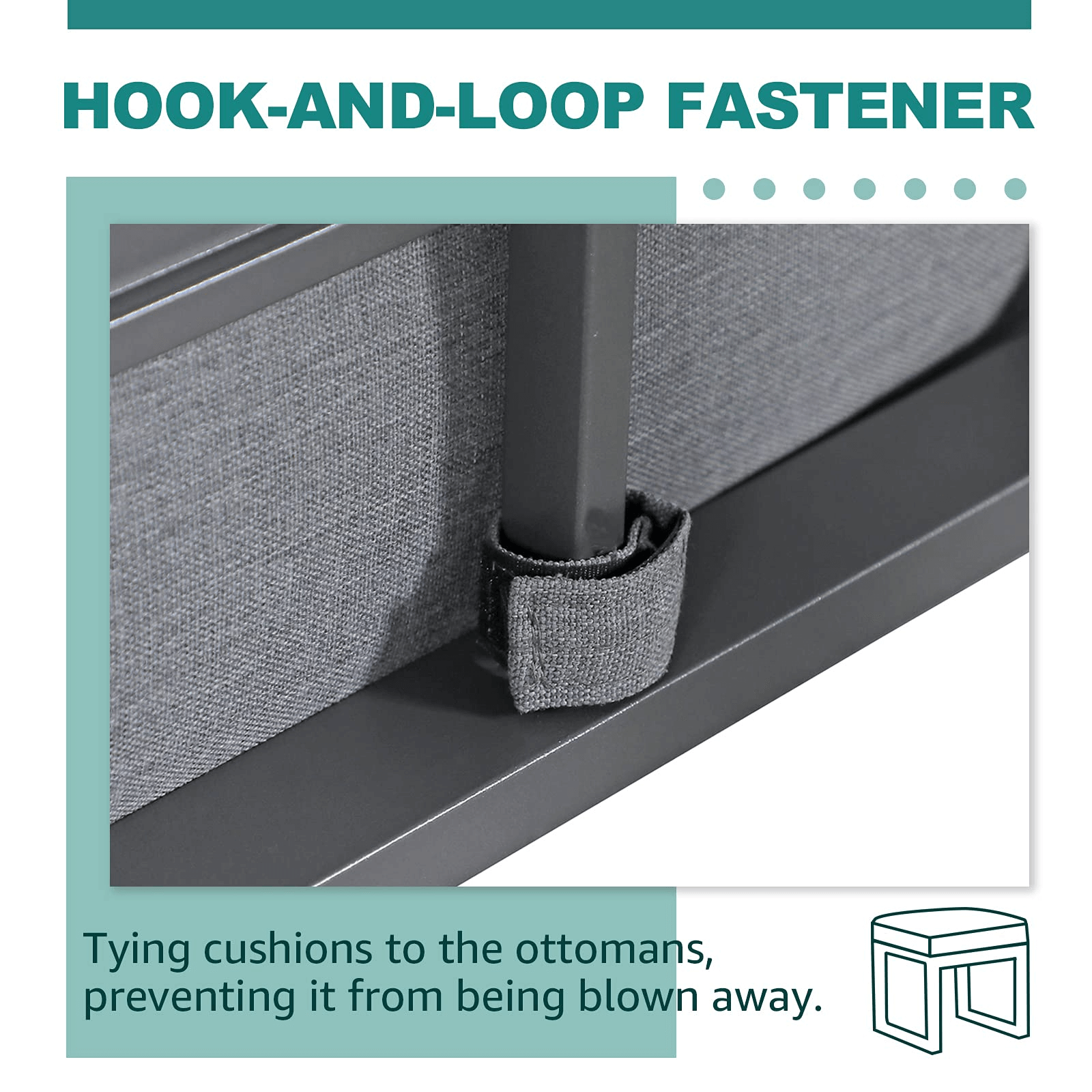 - SAFETY PATTERN-Cushions can be fixed to the ottoman by tying it with the hook-and-loop fastener, which prevents them from falling off by the wind. Height adjusters for uneven surfaces that won’t mar your patio or deck.
