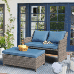 - Comfort–The wide and deep conversation set provides relaxation for 2-4 people. Thick resilience cushions are comfy and it’s a good height for sitting. After a long day, sit with your feet up and forget fatigue and enjoy leisure time completely.