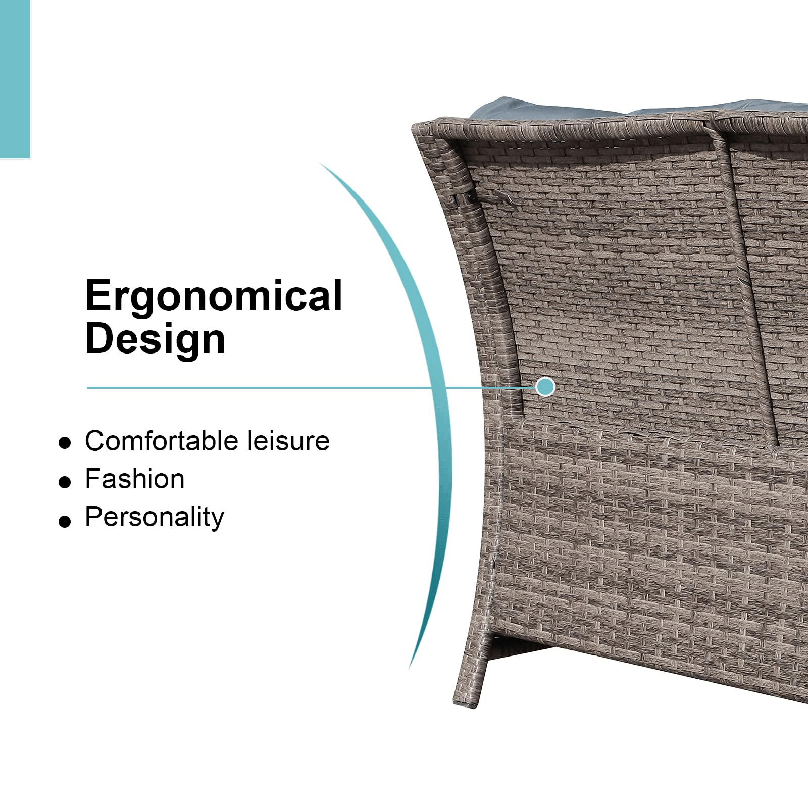 - High Quality–The wicker loveseat set is made of all-weather rattan and sturdy steel frame ensures the long-lasting. Supports up to 250 lbs per seat. Filled with highly elastic foam, cushions are water repellent. Remove it when rainy day.