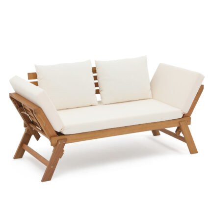 Outdoor Convertible Sofa Daybed, FSC Acacia Wood Patio Couch with Thick Cushion & Pillows