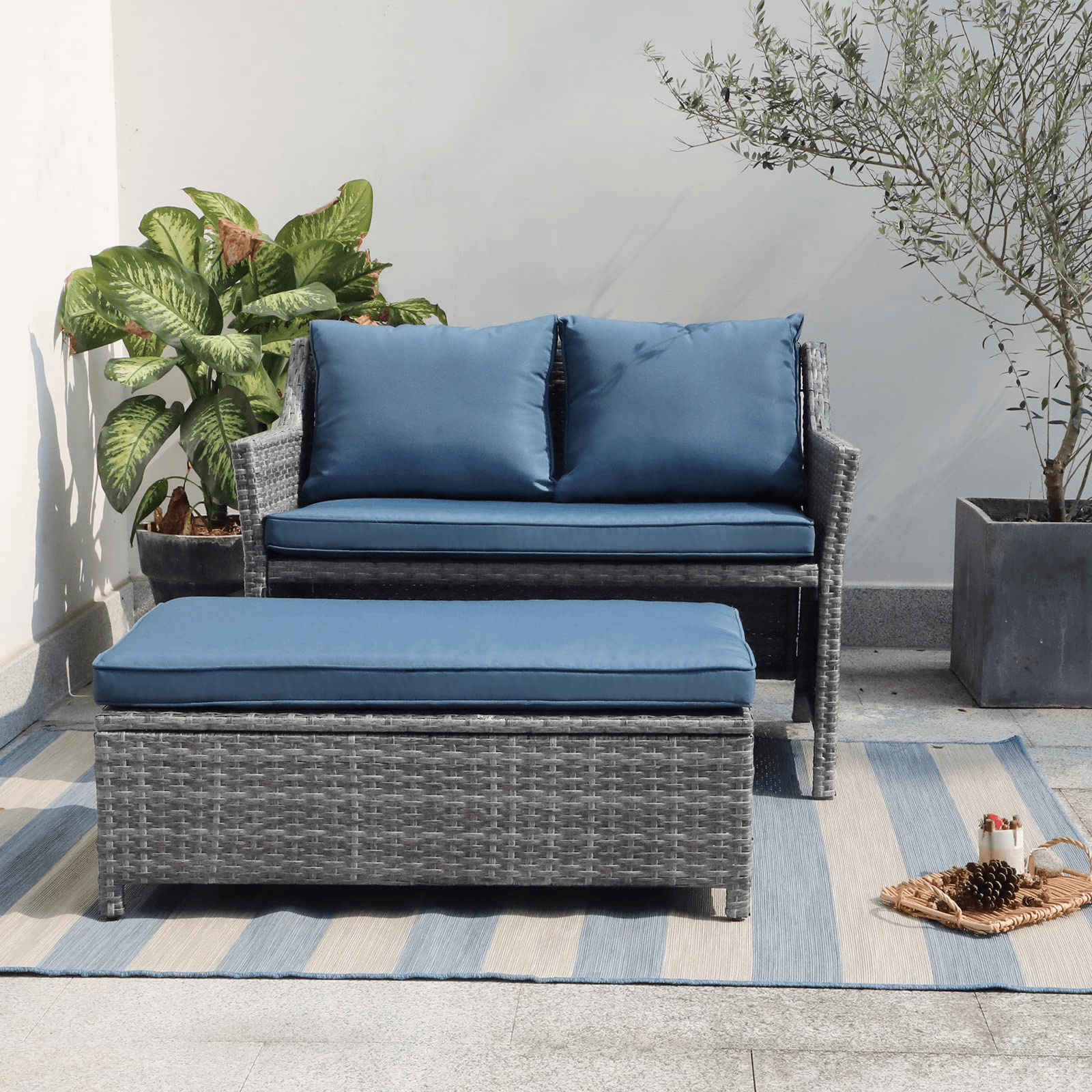 2pcs Loveseat Set with Storage Bin Wicker Outdoor Conversation Set