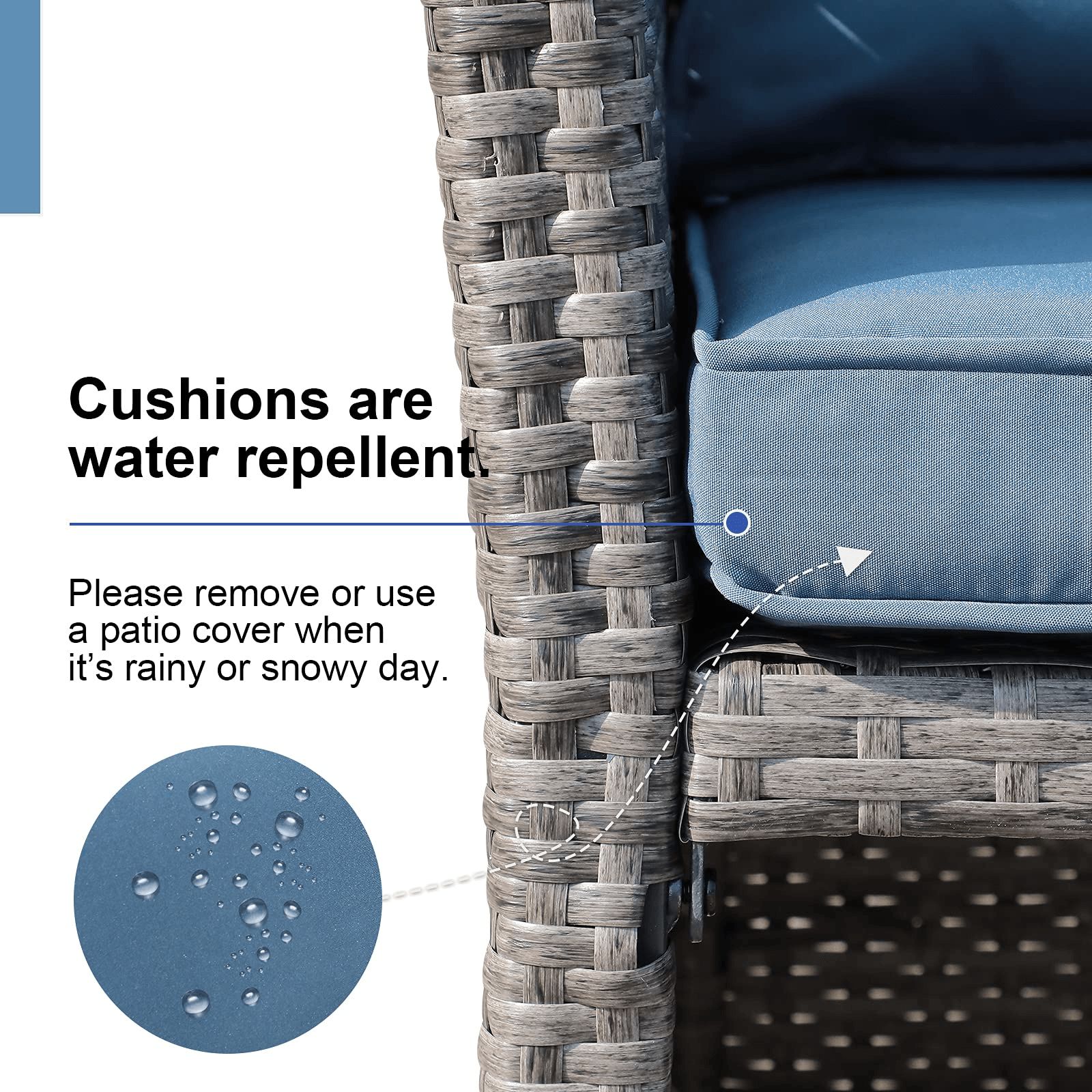 - Perfect for Any Scene–With grey wicker and Aegean Blue/Beige/Grey cushions with a natural look, the accent set is a perfect addition to a small balcony, deck, backyard, porch, poolside and any other indoor & outdoor décor.