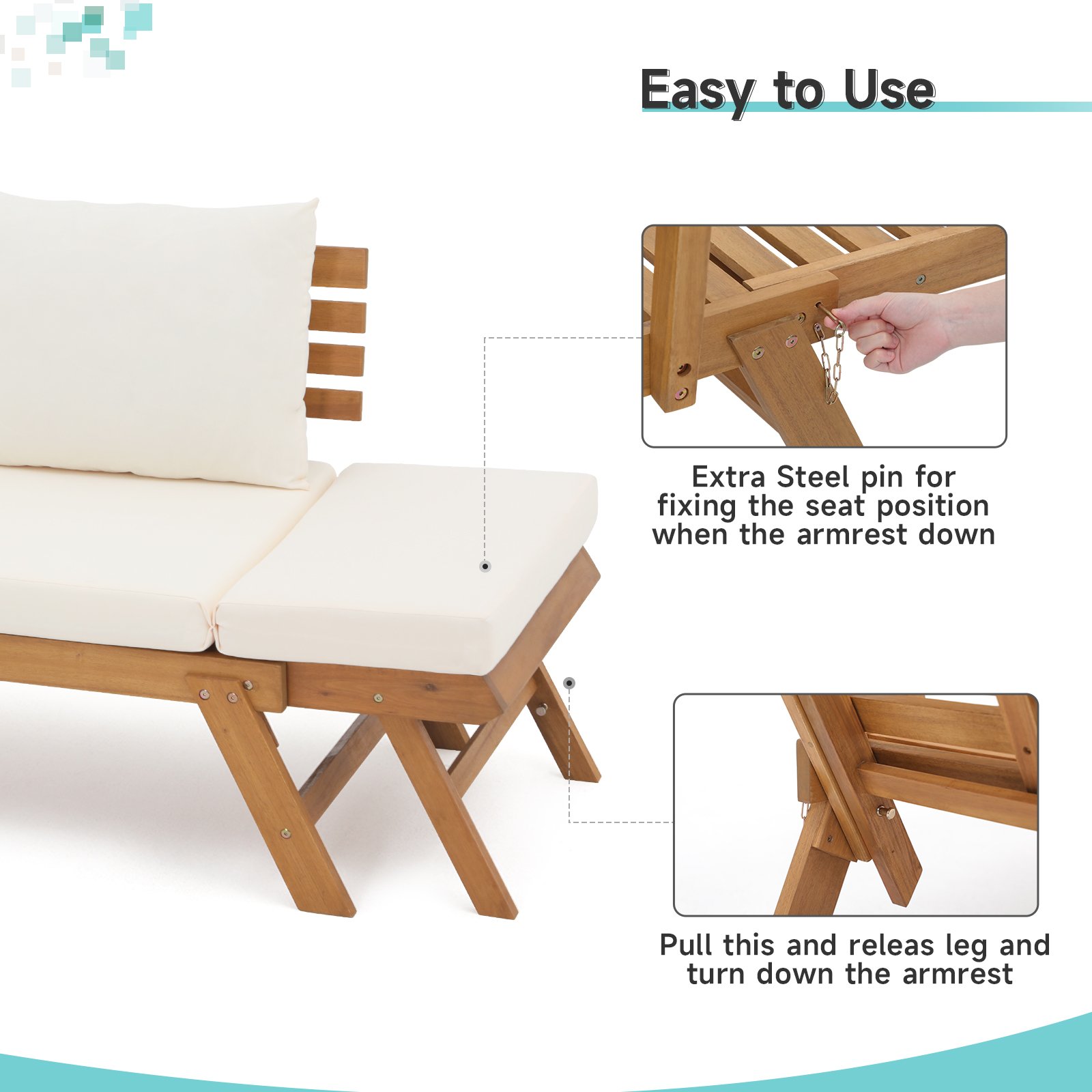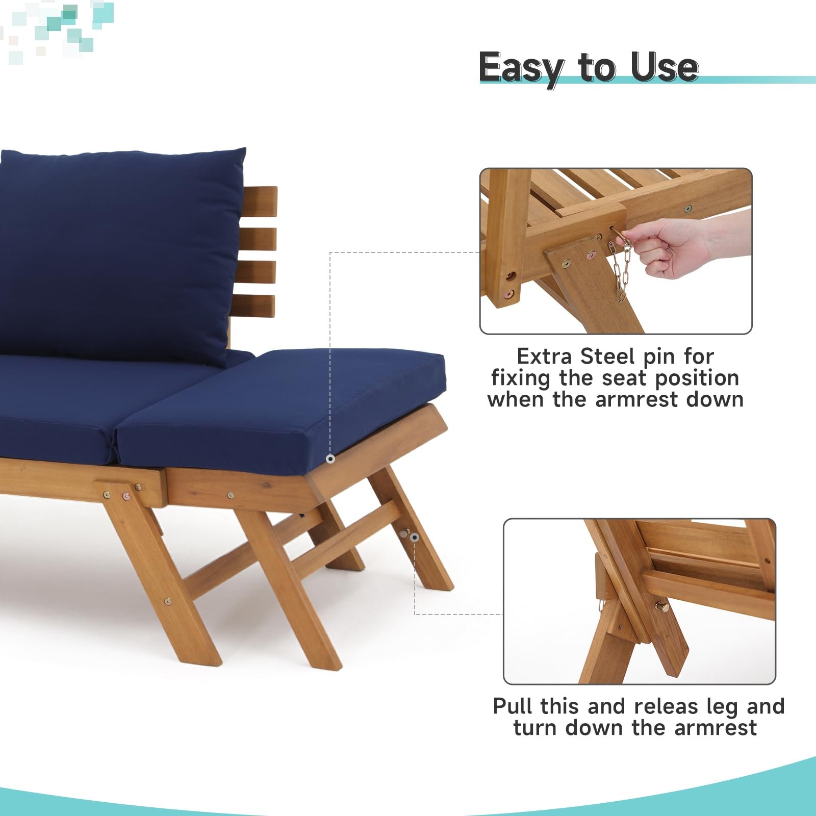 Be the first to review “Outdoor Convertible Sofa Daybed, FSC Acacia Wood Patio Couch with Thick Cushion & Pillows” Cancel reply