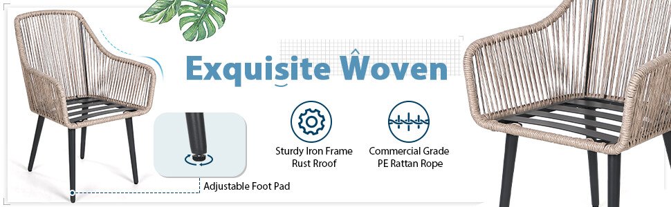 - [Unique & Durable]: Featuring a solid powder-coated frame, the patio dining chair charms tapered legs and wows with adjustable feet that are a natural complement. The twisted all-weather rope wicker is genuinely innovative and provides durability and easy care.