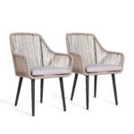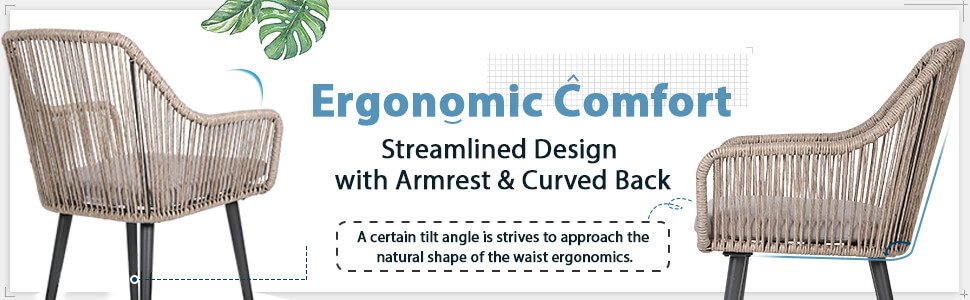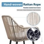 - [Airy Design]: The airy design of the outdoor wicker chair set and its warm combination of handwoven PE rope rattan, will immediately create an intimate and natural atmosphere on your patio. Enjoy a pair of all-weather seats and back for contemporary tableside comfort.