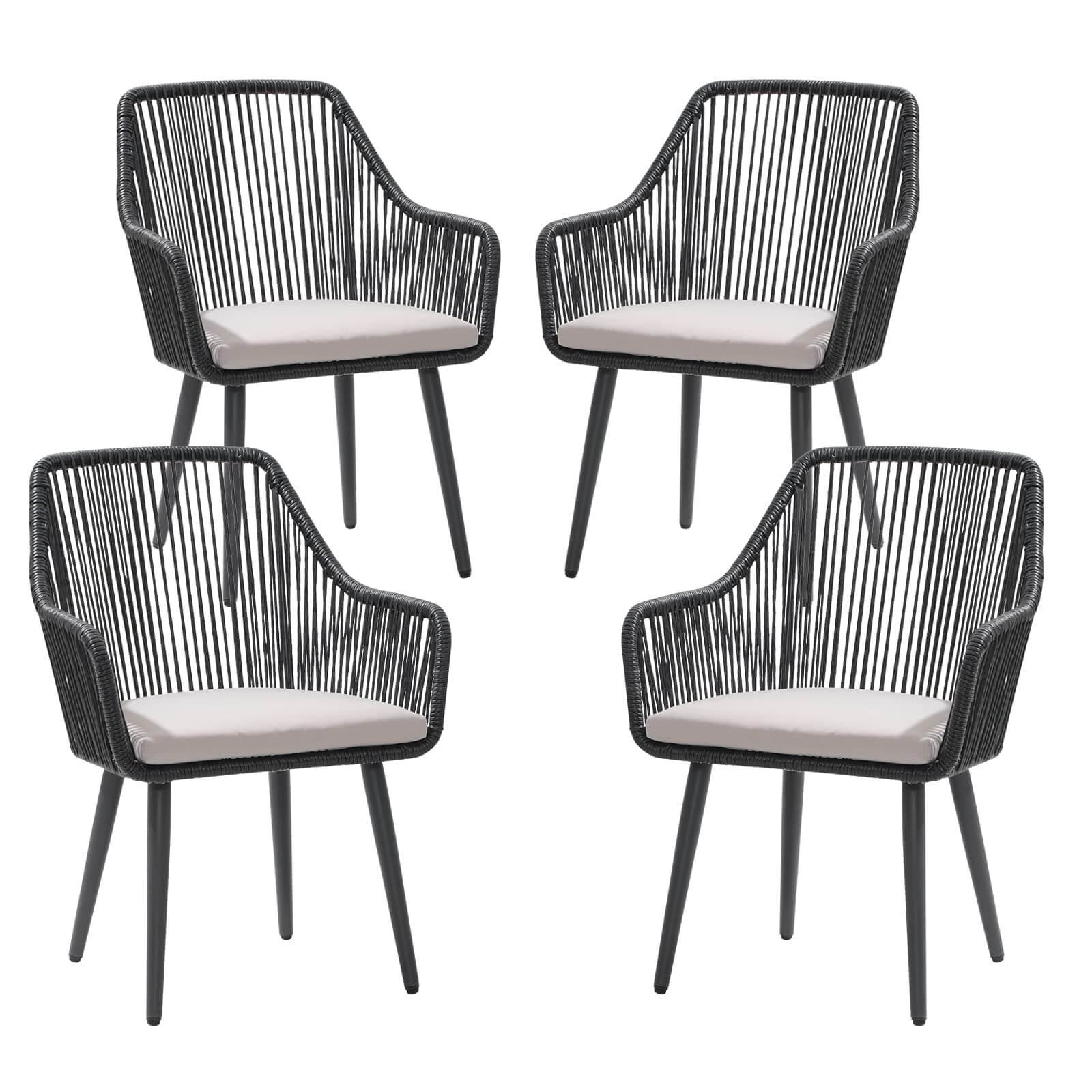 Wicker Outdoor Dining Chairs, All-Weather Woven Rope Rattan Patio Chairs