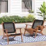 2pcs Folding Patio Dining Chairs, Outdoor Acacia Wooden Rope Reclining Chair w/Armrest