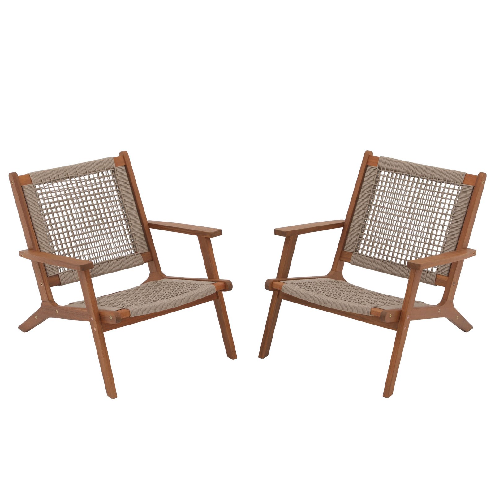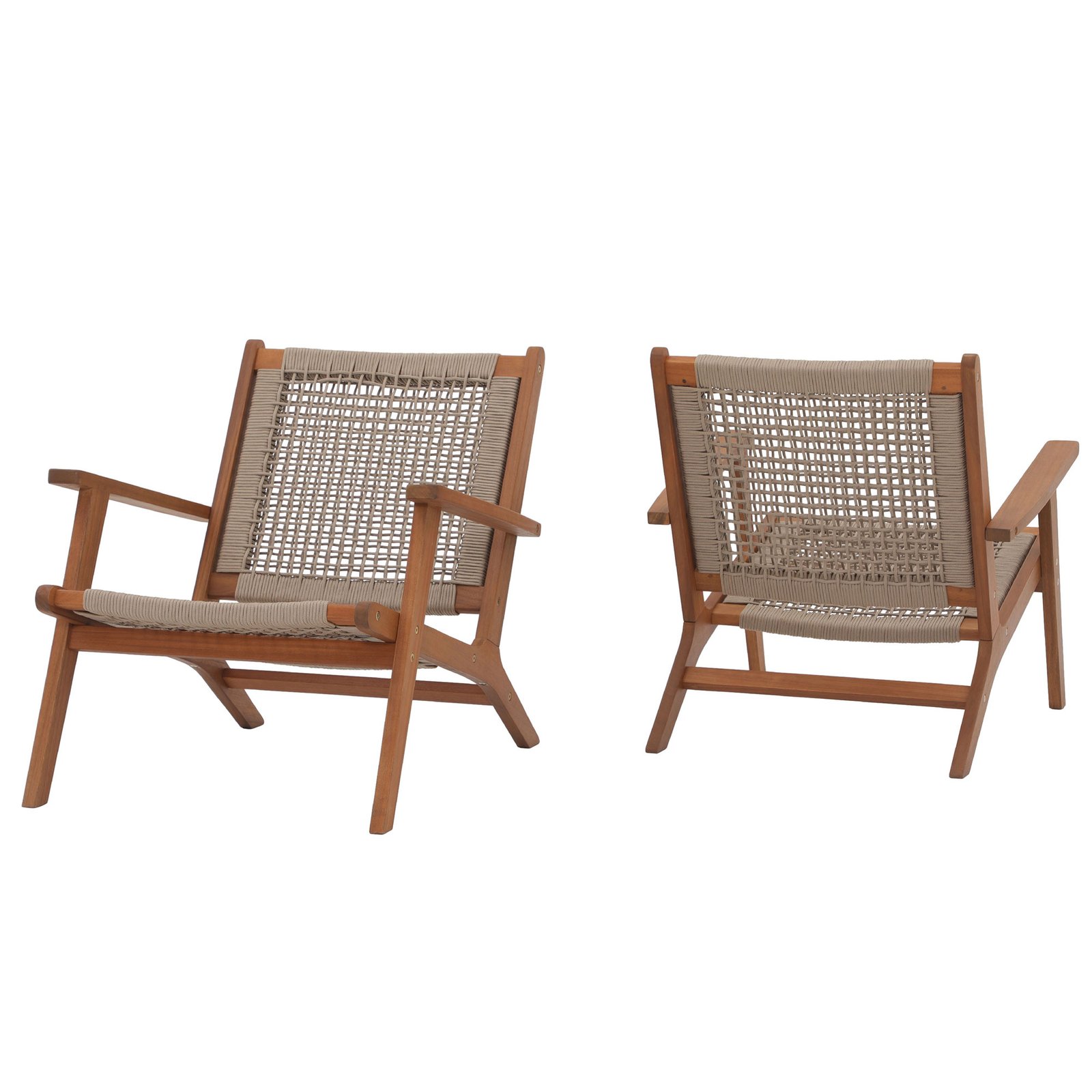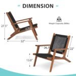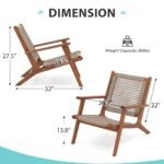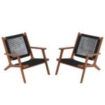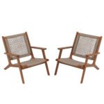 2pcs Wood Patio Lounge Chairs Modern Acacia Wood Accent Armchair with Handwoven Rope